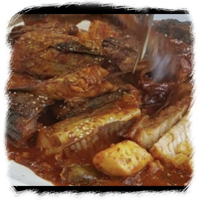 코다리가 아니라 이 양념을 먹기 위해 방문하는 사람들이 있을 정도입니다. 맛있게 먹는 방법은 코다리에 묻어있는 양념을 밥에 올린 뒤 김에 말아서 먹는 방법입니다. 또한, 코다리 외에도 이곳은 화덕구이 생선 요리도 일품입니다. 3인 이상 간다면 이 2가지 모두 드셔보시기 바랍니다.