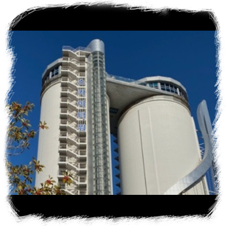 이곳도 명소이므로 스카이타워와 두 동선 연결해서 이동하시기 바랍니다. 여수 스카이타워 전망대를 가면 바로 앞에 주차장이 있습니다. 그 곳에 주차하고 올라가면 됩니다. 스카이타워는 과거에는 동양시멘트의 시멘트 저장고였습니다. 시멘트 저장고로서의 기능을 상실해서 2008년에 철거하게 됐습니다. 그 이후 이곳에 전망대 및 파이트 오르간을 설치했습니다.